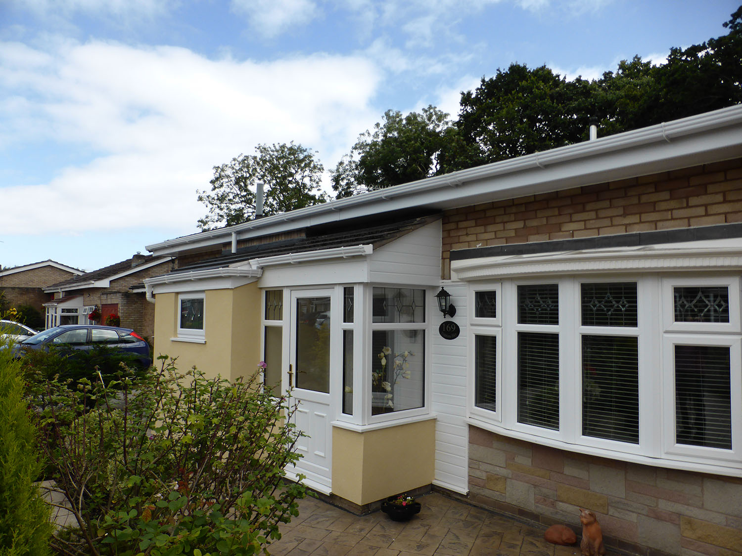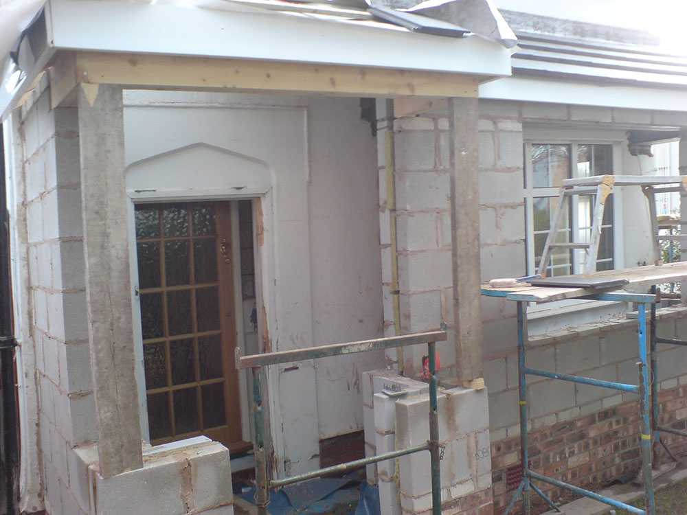 A porch and garage extension, we also took off the old flat roof and constructed a new tiled roof.